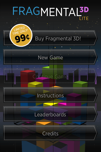 Atari-tetris zamanlarından, renksiz cep telefonlarına, renkli ekranlardan tabletlere gelinceye kadar vazgeçemediğimiz, modası geçmeyen oyunların başında tetris geliyor. Kimi zaman can sıkıntısında, kimi zaman yolda geçen zamanı değerlendirmeye birebir tetris. Fragmental, alışılmışlığın dışına çıkarak 3d tetrisi oluşturmuş. Açıkcası App store da ilk kez görüyorum, ki ilgimi de çekti.