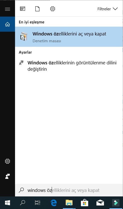 7- Bilgisayarımız açılınca arama bölümüne windows özelliklerini aç veya kapat yazıp açıyoruz.