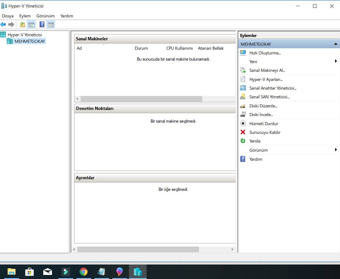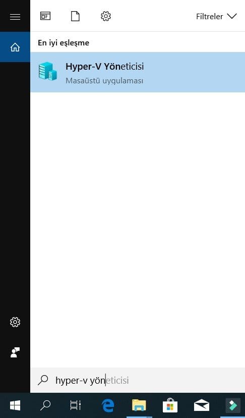 11- Bilgisayarınız başladıktan sonra arama bölümünüze hyper-v yöneticisi yazarsanız karşınıza gelecektir.